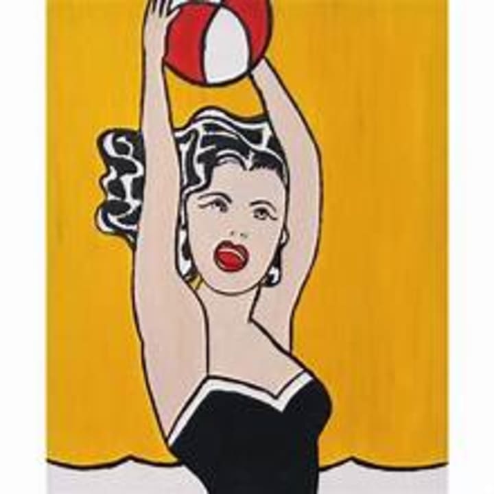 Created in 1961, Girl with Ball is a painting theme that was inspired by a 1961 ad for the Mount Airy Lodge in the Pocono Mountains in Pennsylvania, advertised around 1955. The artwork can be seen at the Museum of Modern Art in NYC.