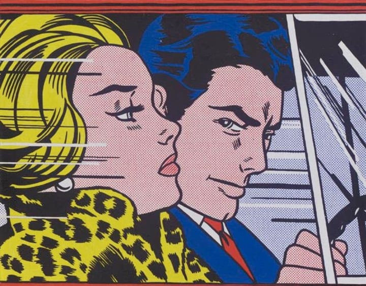 Created in 1963, In the Car is a painting known for its record highest auction price. The artwork is based on the September 1961 comic book series Girl’s Romances. It can be viewed at the Scottish National Gallery of Modern Art in Edinburgh.