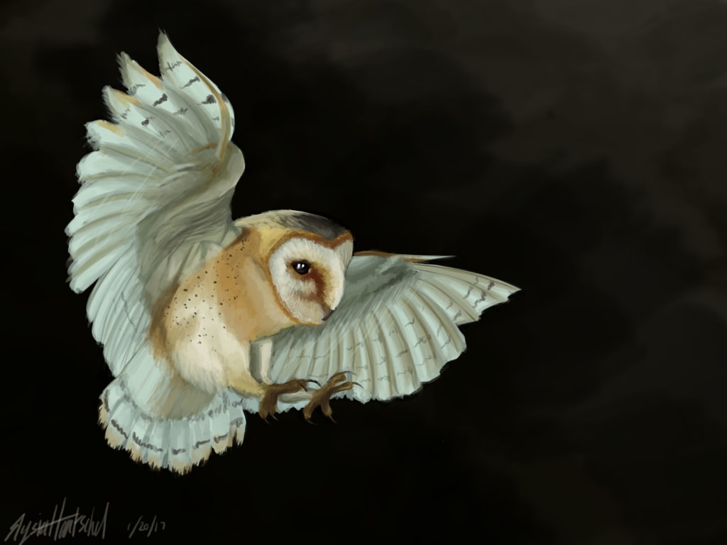 Holding a vision of her mother briefly kept her warm against the cold and brutal wind until a strong gust brought her back from the ether of her memories. She was almost at her destination no time for distractions she told herself. It was there upon the Crest of a hill and her pupils dilated as she caught sight of it, the lonely fortress on the hill. She remembered the day she found it and knew instantly that was home. The sun was starting to rise and golden ribbons of light we're starting to peek through the curtain of night. No time to waste, those creatures would be stirring soon and she was tired from her long night. Her dive was methodical, slow, and beautiful. She took great care not to make too much noise as she landed. The cries of her young babies could be heard and it warmed her heart to know they were safe. There she was in all her glory, the barn owl nestled with her family in her hearth and home.