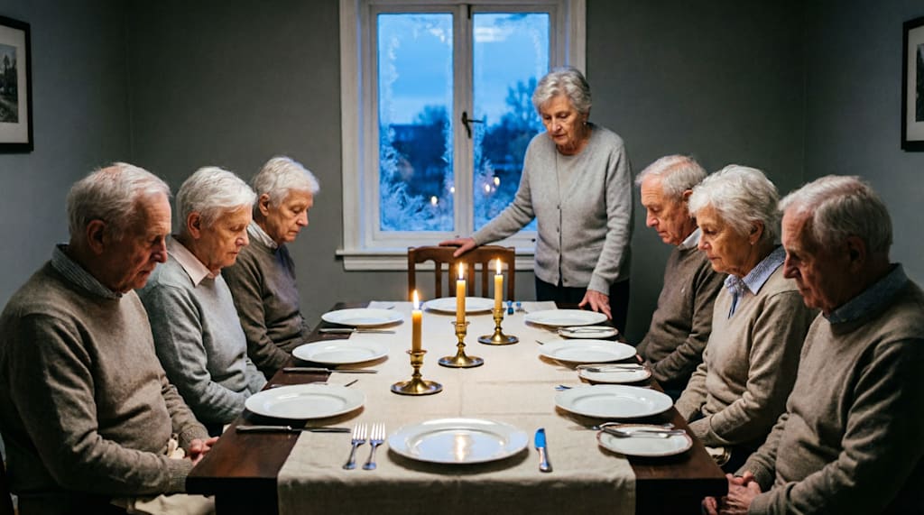 I've lived at Harrow House for eighteen months now. I've attended five hundred and forty dinners. I've polished the twelfth plate forty-seven times. I've watched new residents learn the rule without being told. I've seen them reach for the chair and withdraw. I've seen them ask and be answered with eyes instead of words. I've seen them understand.