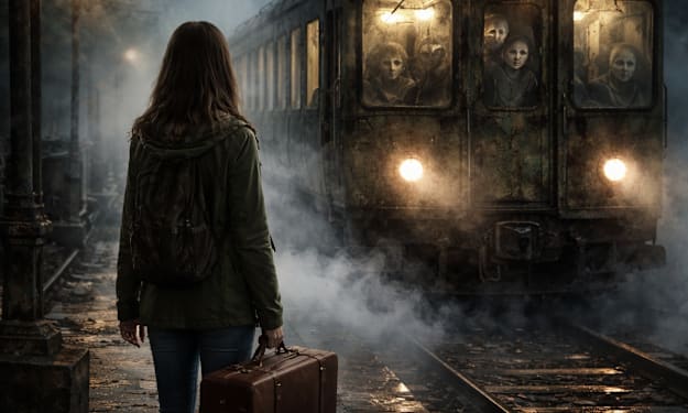 The town of Viremont did not appear on most maps anymore. Once, it had been a quiet mountain settlement somewhere between France and Switzerland, known for its misty hills and a railway that cut through the heart of the valley. But over time, the trains stopped coming. The station fell into disrepair, and the name “Viremont” slowly faded from travel routes, brochures, and memory. Except for one train. Elise Moreau had never heard of Viremont until she saw the listing online: “Charming alpine retreat, untouched by modern noise.” It sounded perfect. She needed quiet—after the breakup, after the city, after everything. The directions were vague. A connecting train from Lyon, then another from a small station she could barely pronounce. The last leg of the journey wasn’t listed in any official timetable. “You’ll know it when you see it,” the old ticket clerk had said, handing her a faded paper ticket. His fingers trembled slightly. “But… don’t miss it.” “Miss it?” Elise asked. The man looked at her with a strange, hollow expression. “There isn’t another.” Night had already fallen when Elise reached the final station. It was little more than a wooden platform surrounded by dense forest. No lights except a flickering lantern. No people. And yet, a train was waiting. It looked… wrong. The carriages were old—far older than anything still in service. The paint was chipped, the windows darkened with grime. A faint metallic screech echoed as the doors creaked open by themselves. Elise hesitated. Then she stepped inside. The interior smelled of dust and something faintly rotten. The seats were empty, but impressions in the worn fabric suggested they hadn’t always been. She walked down the aisle, her footsteps echoing unnaturally loud. “Hello?” she called out. No answer. The train lurched suddenly, jolting her forward. The doors slammed shut behind her. They were moving. At first, Elise tried to calm herself. Maybe this was just an old tourist line. Maybe the eerie atmosphere was part of the charm. But something wasn’t right. Outside the window, the forest passed too quickly—blurring into dark streaks. The sky had no stars. No moon. Just a suffocating blackness that seemed to press against the glass. Then she saw them. Figures. Standing between the trees. They weren’t moving. Just watching. Their faces were pale—too pale—and their eyes reflected the dim interior light like those of animals. As the train sped past, their heads turned in perfect unison, tracking her. Elise pulled the curtain shut, her breath catching in her throat. “This isn’t real,” she whispered. But the train disagreed. A door slammed somewhere behind her. She turned slowly. The carriage she had walked through moments ago was no longer empty. Passengers now filled the seats. They hadn’t entered. They were just… there. Men, women, even children. All dressed in outdated clothing—styles from decades past. Some looked injured. Others looked worse. None of them moved. None of them blinked. Until she did. Then every single head turned toward her. Elise stumbled backward. “I—I'm sorry, I think I’m in the wrong—” A woman in the nearest seat leaned forward. Her neck twisted unnaturally, tilting far beyond what should have been possible. “You boarded,” she said in a voice like dry leaves. “That means you’re expected.” “Expected… where?” The woman smiled. Her teeth were black. “At the end.” Elise ran. Through carriage after carriage, each one filled with the same silent passengers. Their eyes followed her, their heads turning as she passed. Some reached out, their fingers brushing the air just inches from her skin. “Stop,” a voice whispered. “Stay,” another hissed. “You’re almost there,” said a third. She reached the final carriage. And froze. At the far end stood a conductor. Tall. Unnaturally so. His uniform was immaculate, but his face— His face was blurred. As if it couldn’t decide what it wanted to be. “Ticket,” he said. Elise fumbled in her pocket, her hands shaking as she handed it over. He examined it slowly. Then tilted his head. “This ticket…” he murmured. “It was issued long ago.” “What does that mean?” The conductor stepped closer. “It means,” he said softly, “you were always meant to be on this train.” The train began to slow. Outside, the darkness lifted just enough to reveal a station. But it wasn’t Viremont. The platform was crowded. With the same figures Elise had seen in the forest. They stood shoulder to shoulder, waiting. Watching. Smiling. The doors opened. A cold wind swept through the carriage, carrying with it the sound of distant whispers—thousands of voices speaking at once. “Please,” Elise begged. “I don’t want to get off.” The conductor leaned in close. “You already have,” he whispered. The next morning, a hiker passed by an abandoned railway deep in the mountains. He paused when he saw something strange on the old platform. A suitcase. Modern. Clean. Out of place. Beside it lay a single paper ticket, yellowed with age. The ink had faded, but one word was still barely visible: Viremont No trains had passed through that line in over fifty years. And yet, if you listened carefully—especially at night—you could still hear it. The distant sound of wheels on tracks. And the faint echo of passengers who never arrived.