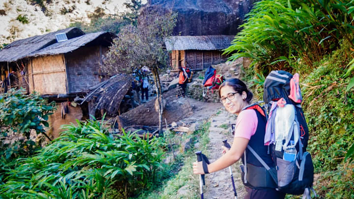 The first days on the trail were soft and welcoming. We walked through small villages where life felt simple and complete. Terraced fields climbed the hills in neat patterns, and people moved through their daily routines with quiet purpose. Children waved and smiled, sometimes walking beside us for a while before running off again. I didn’t understand their language, but I understood their warmth.