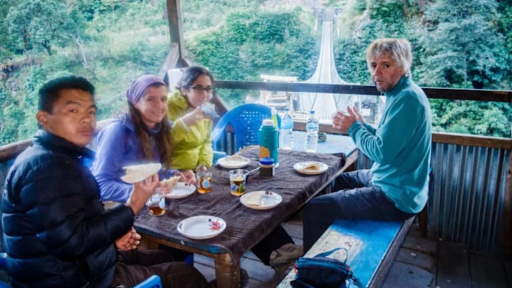 The days passed slowly, yet somehow quickly. Rivers became our constant companions, sometimes calm and quiet, sometimes loud and powerful as they rushed over rocks. Crossing suspension bridges always made me pause for a moment, looking down at the water below, feeling both small and alive at the same time.