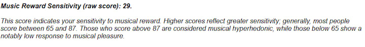 There's a lot more professional research about this topic, and a test you can take to see your music enjoyment called the Barcelona Music Reward Questionnaire (BMRQ). It measures factors like Musical Seeking, Emotion Evocation, Mood Regulation, Sensory-Motor, and Social Reward.